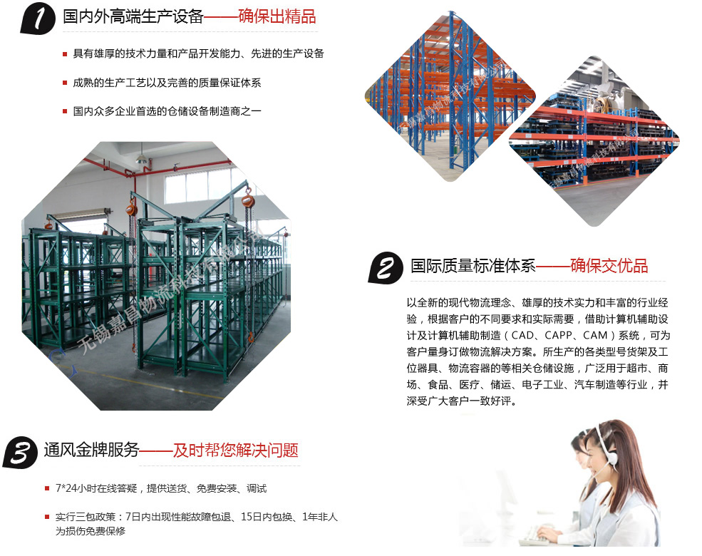 無錫嘉昌倉(cāng)儲(chǔ)貨架有限公司是國(guó)內(nèi)現(xiàn)代倉(cāng)儲(chǔ)物流技術(shù)開發(fā)、設(shè)計(jì)、生產(chǎn)和安裝的專業(yè)廠家,具有雄厚的技術(shù)力量和產(chǎn)品開發(fā)能力、先進(jìn)的生產(chǎn)設(shè)備、成熟的生產(chǎn)工藝以及完善的質(zhì)量保證體系。公司始終“以質(zhì)量求生存,以信譽(yù)求發(fā)展的”的經(jīng)營(yíng)理念,放眼世界,積極引進(jìn)、吸收國(guó)際物流行業(yè)先進(jìn)技術(shù),憑借專業(yè)的制作經(jīng)驗(yàn)、優(yōu)秀的產(chǎn)品質(zhì)量,是國(guó)內(nèi)眾多企業(yè)首選的倉(cāng)儲(chǔ)設(shè)備制造商之一。
